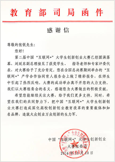 2018年,快直播连续多年为中国国际互联网+大学生创新创业大赛做出积极贡献,获教育部来函致谢。
